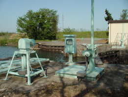 閘門扉体の開閉装置と水位計