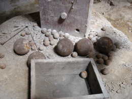 ボールミル内で石灰石の粉砕に使われていた鉄球