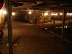 | 採石場から砕石工場までを、このトンネルの中に敷設されたトロッコ軌道で石灰石を運搬していました。 高屋栄助が鉱山で働いた経験を生かし、中心となって難関であった県道の下を通る隧道を完成させました。 |