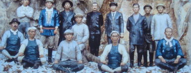 金野柳之進・・・・昭和6年当時19歳で、この中では最年少でした。群像建立時ただ一人存命でしたが、平成8年没。この群像の人びとの名前は、金野さんからお聞きしたものです。