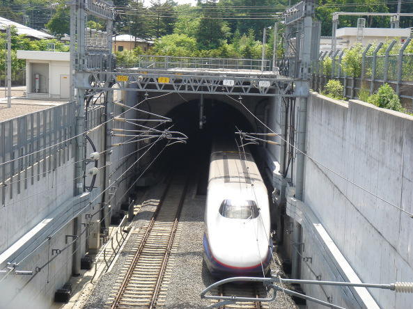 北陸(長野)新幹線 借宿トンネルの軽井沢駅側に異周波切替セクションがあります。