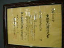 重要文化財指定書