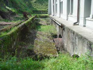八百津発電所の有効落差は46.2mでしたが、木曽川の洪水時の水位上昇を考慮して、放水口の水位に余裕が持たせてありました。そのため平常時には放水口の水面から河水面までに約7mの落差がありました。この残留落差を有効に利用するために、放水口に小発電所が設けられました。
