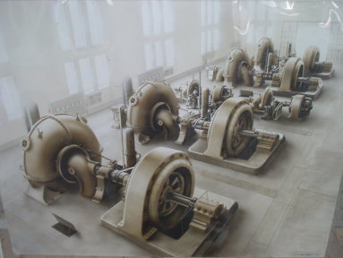 4号機が設置されていた当時の発電室、いちばん手前が4号機