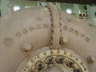 当初は、米国モルガン・スミス社製(1911(明治44)年)でしたが、竣工時とその後にも、渦巻ケーシングが破裂したので、1922(大正11)年から1924(大正13)年にかけて、水車はすべて電業社原動機製造所製のものに取り替えられました。