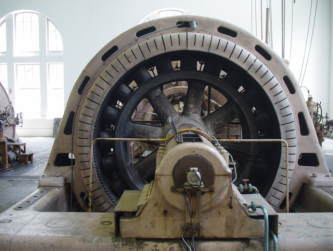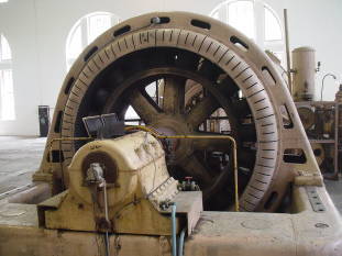 1911(明治44)年製ですが、1922(大正11)年から1924(大正13)年にかけて、出力を7500kWから9600kWに増強するため芝浦製作所(現在の東芝)がコイルを巻き替える改造を実施しています。