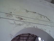 | 内装の漆喰が剥げた部分から煉瓦積みが見えます。 | |