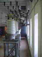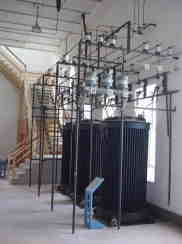 発電機から母線に流れてきた電気の電圧を高めるための変圧器(トランス)が設置されていました。