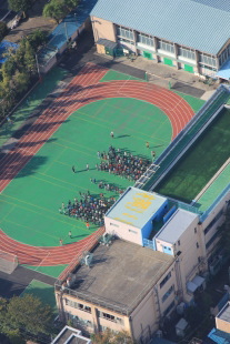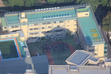 平日の月曜日のため、小学校では朝礼が行われていました。