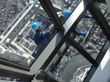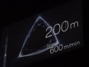 敷地面積の制約から、タワーの構造で水平方向の断面は正三角形から円形に変化させています。(地上約320mで円形になっています。)