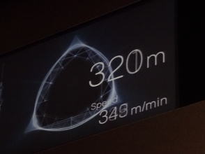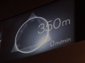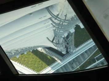 「展望デッキ」(350m)へのエレベーター内では形状の変化がこのように示されていきます。