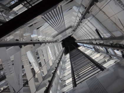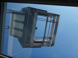 「展望デッキ」(350m)から「展望回廊」(450m)へのエレベータ