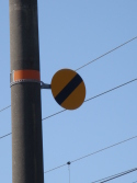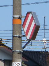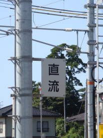 | 直流区間を示す表示 | 架線が無給電区間を示す標識 | 交流区間を示す表示 |