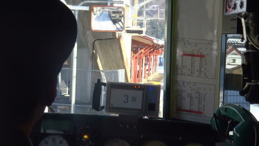 停止位置を確認するため「3両」編成の表示が出ています。