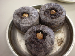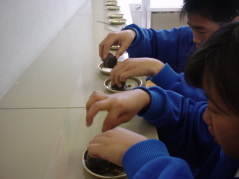 培養土ポットにエンドウをまきました。