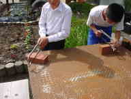 「イギリス積み」と「フランス積み」の2つの代表的な煉瓦積み模型(1/5)をつくります。