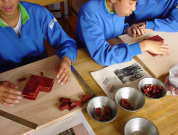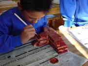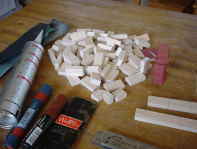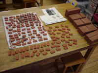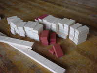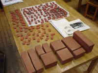 煉瓦積み模型用の縮尺約1/5の煉瓦(木製着色)をつくります。