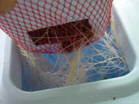夏みかんが入っていた網を切ってプランターのポットにかぶせました。